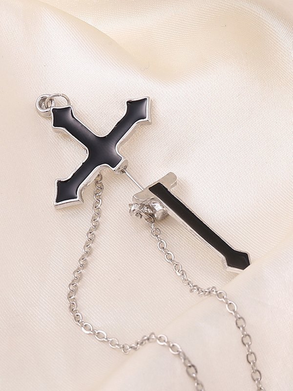 Chain Embellished Cross Pendant Stud Earring