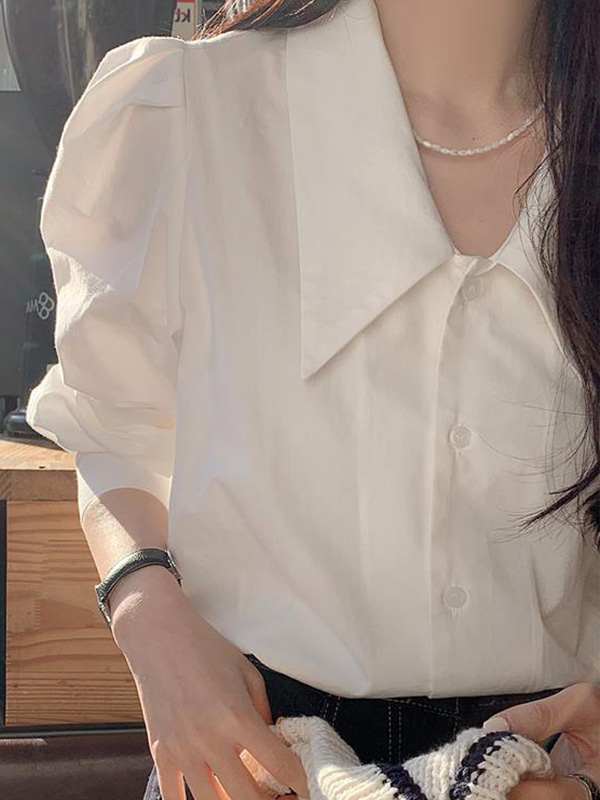 Retro Simple White Long Sleeves Shirts