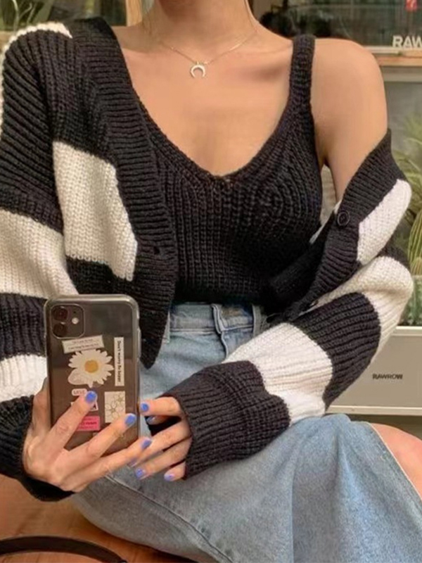 Striking Design: The classic stripe jacquard pattern gives this cardigan a unique and stylish look, making it an eye catching piece.
