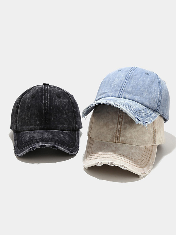 Wash Distressed Denim Ripped Baseball Cap
