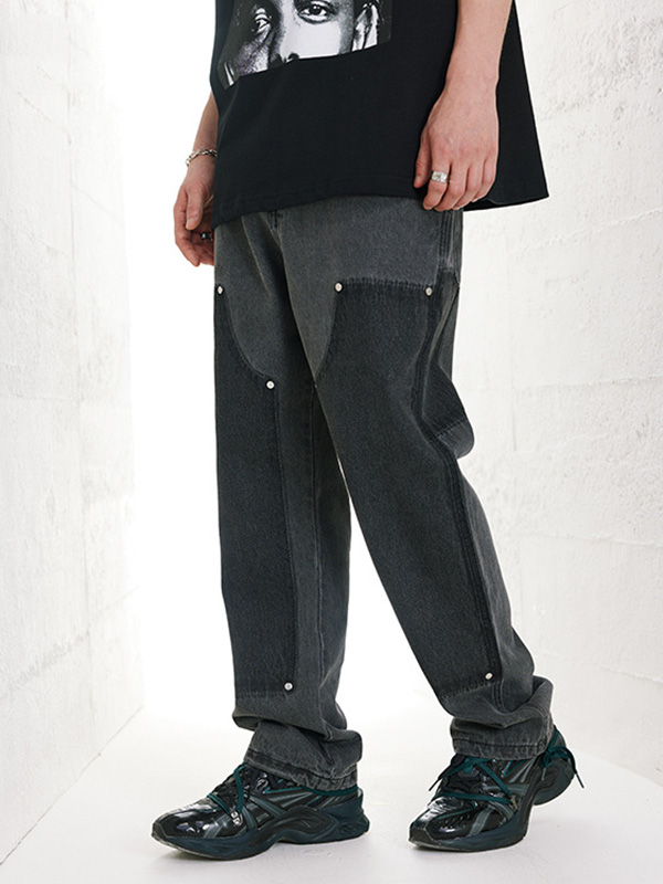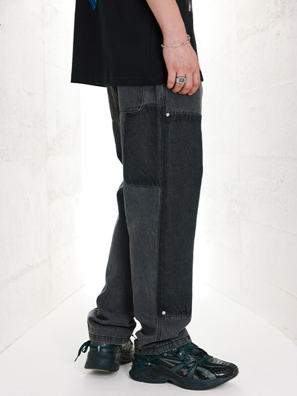 Wide Leg Loose, Washed Irregular Cargo Jeans